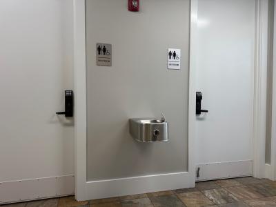 - Install surface mounted, Filtered Water Bottle Filler Station with drinking fountain (Elkay LZS8WSSP or equal)
